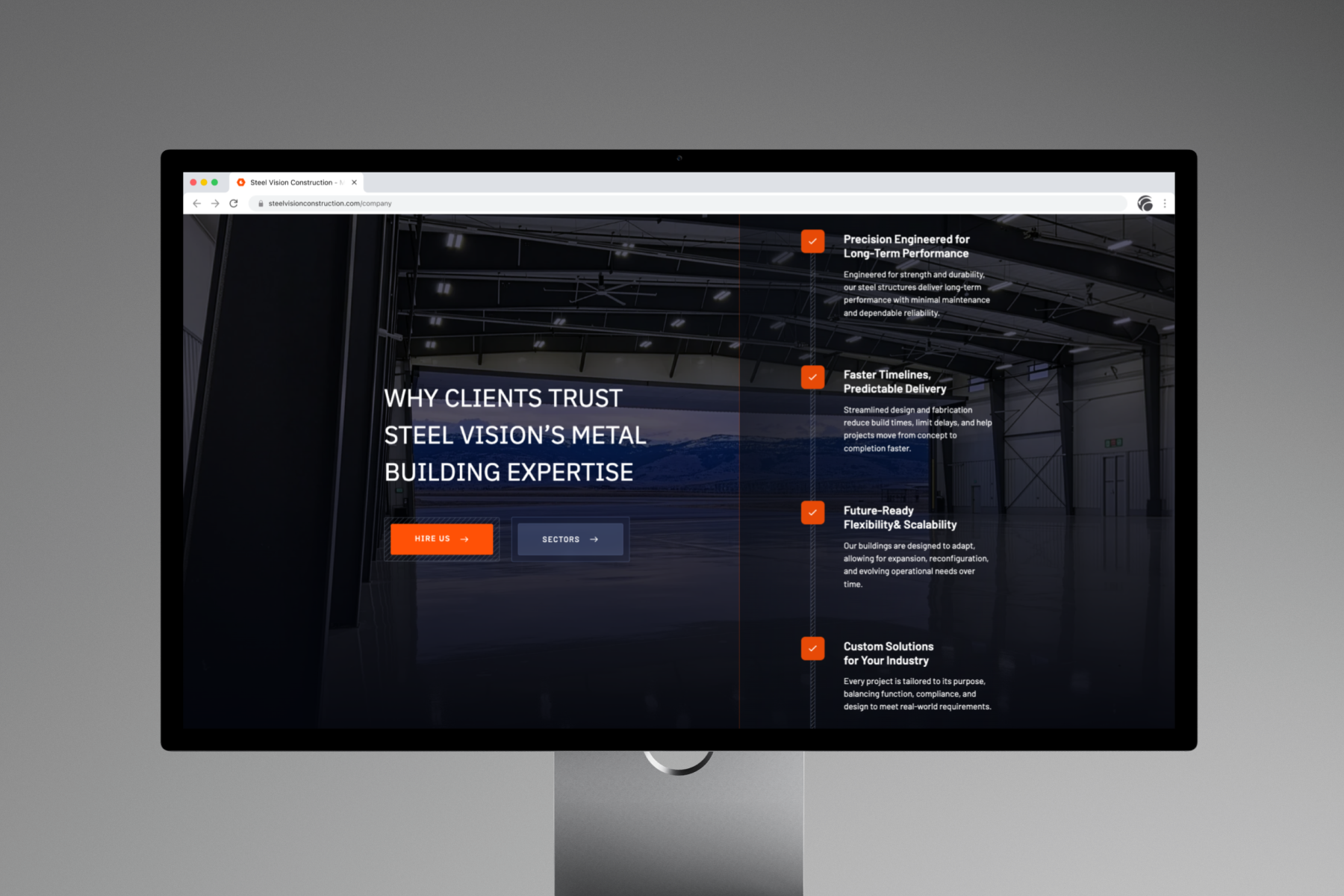 Steel Vision required a website that reflected the scale, precision, and professionalism of their construction work. We reworked their digital presence from the ground up, transforming a dated structure into a modern, high-performance platform. The new site delivers clearer messaging, stronger visual hierarchy, improved mobile responsiveness, and streamlined navigation, ensuring potential clients can quickly understand Steel Vision’s capabilities across commercial, industrial, and specialist sectors.